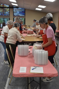 “The last couple years, we’ve been done in four hours,” she said. “This year was a little different because we’re including the small pies. It may take a little bit longer.”