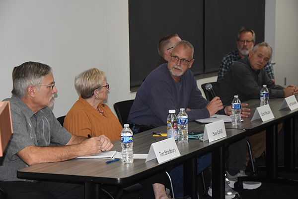 Meeting at the Marshalltown Public Library, at-large candidates Tim Bradbury, Sue Cahill, Scott McLain and incumbent Jeff Schneider, and mayoral candidates Mike Ladehoff and Gary Thompson, answered questions from Marshalltown Area Chamber of Commerce President and CEO John Hall.