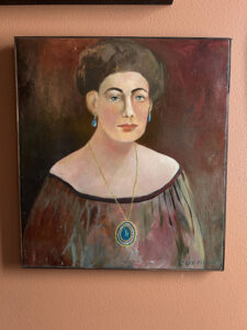 Approximately 40 pieces of art will be on display, ranging from portraits painted with oils, acrylics, and watercolor, plus woodcarvings and painted porcelain. The earliest painting on display came from Susan Donaldson, and it dates to 1964. Mary loaned the exhibit one of Fitz’s smocks.