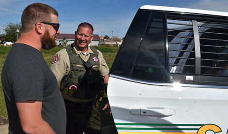 - Marshall County Chief Deputy Ben Veren gave visitors the chance to take a look inside a sheriff’s office vehicle.