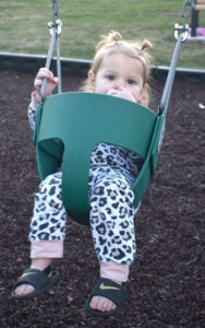 - Maggie Walton gets some quality time on the swings during Saturday’s Le Grand City Park grand opening festivities Saturday.