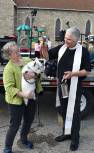 - Oliviah Walker’s dog Rusty is blessed by Fr. Graves during the St. Paul’s Fall Festival on Sunday.