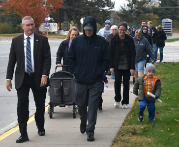Iowa Veterans Home staff and residents teamed up with community members both young and old on campus Thursday for the annual Walk to End Alzheimer’s in partnership with the Alzheimer’s Association, posing for a group photo with many of the walkers dressed in their Halloween best before embarking on the walk itself.