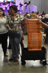 - Immigrant Allies co-founder and co-organizer Maria Gonzalez-Alvarez wheels in a stack of Little Caesar pizzas for the Community Unity Potluck on Sunday. The annual event was also a celebration of the 15th anniversary of Immigrant Allies.