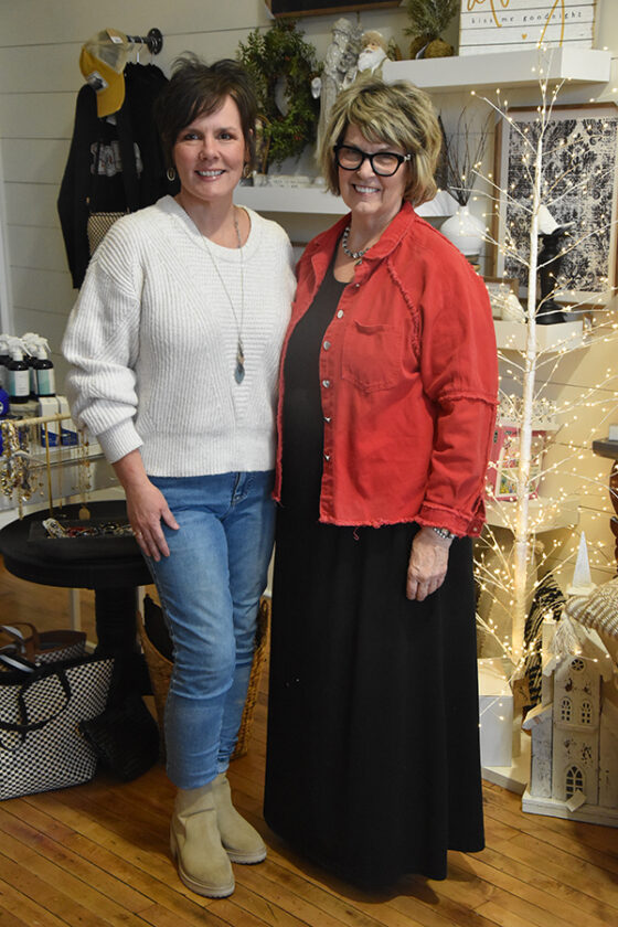 T-R PHOTO BY LANA BRADSTREAM — Kris Husak, owner of BKRY 146, and Cheryl Hayes, owner of the new 13th Street boutique Harvest to Home, are collaborating to bring new products and shopping experiences to customers. Harvest to Home hosted a soft opening on Wednesday.