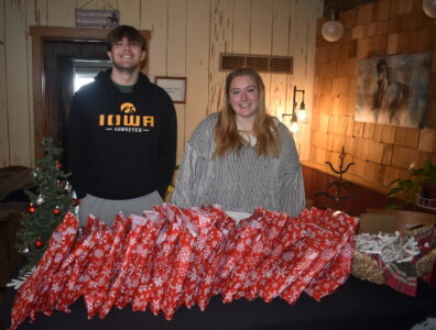 Wolfe Ranch of Quakerdale, located just east of Marshalltown off of Highway 30, hosted its annual “Christmas in the Stables” event on Saturday with a wide range of activities available to attendees. Matilda, Susanna and Angie Claus ran a craft station inside the stable, and Kayla and Taylor Elliott enjoy some sweet treats. Max and Haley Reed hand out presents, and Mark Chase of the Wolfe Ranch staff poses for a photo with the horse Matt, who was all decked out in Christmas attire.