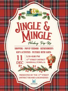 “This is a really great example of the interaction with all the community members. It really does feel like an intimate and fun area that everybody is welcome in,” said 13th Street District Board President Heidi Draisey. “So the Jingle & Mingle is our wrap up of the year, our celebration of a wonderful event season and a chance to come together and celebrate holidays together. So we’re really excited to invite everybody down there.”