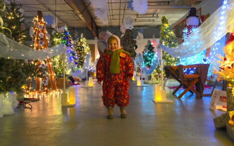 Beyond Santa’s stage, much of the upper level was brilliantly decked out with brightly lit Christmas trees all creatively and uniquely decorated by area businesses, organizations, churches, and individuals in line with the 2025 theme ‘Snow Much Fun.’ In addition to arranging the trees, members of the Commercial Club spent countless hours this year decorating the space with white and blue tissue snowflakes and twinkle lights, while the path through the Festival of Trees was marked with glowing paper lanterns and tulle. There was also a stunning, life-size “snowglobe” with a winter wonderland background for folks to snap family photos.