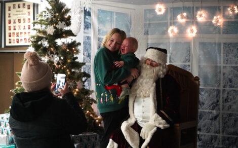 Despite the bone-chilling cold that evening – air temperatures hovered in the single digits while the wind chill was below zero amid brisk northwest winds – Santa Claus was greeted by a bustling line of children and their caregivers upon his arrival at 5:30 p.m. to the City Centre’s upper level. One of the first children to take a seat on Santa’s lap seemed a bit perplexed as to what they might like for Christmas. “I want candy,” the youngster eventually decided, to which Saint Nick joked, “Candy? We just went through Halloween!”