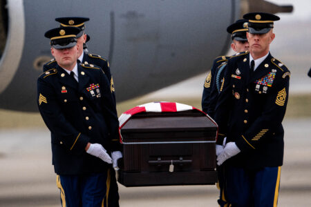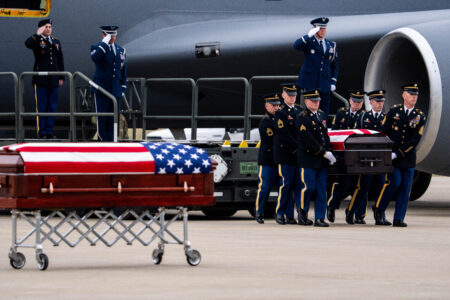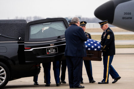 - The remains of Iowa National Guard Staff Sgts. Edgar Torres-Tovar and William Howard, who were killed in action in Syria on Dec. 13, 2025, are transported off an Iowa National Guard plane during an honorable transfer ceremony at the Des Moines International Airport on Wednesday, Dec. 24, 2025. (Erin Murphy/The Gazette)