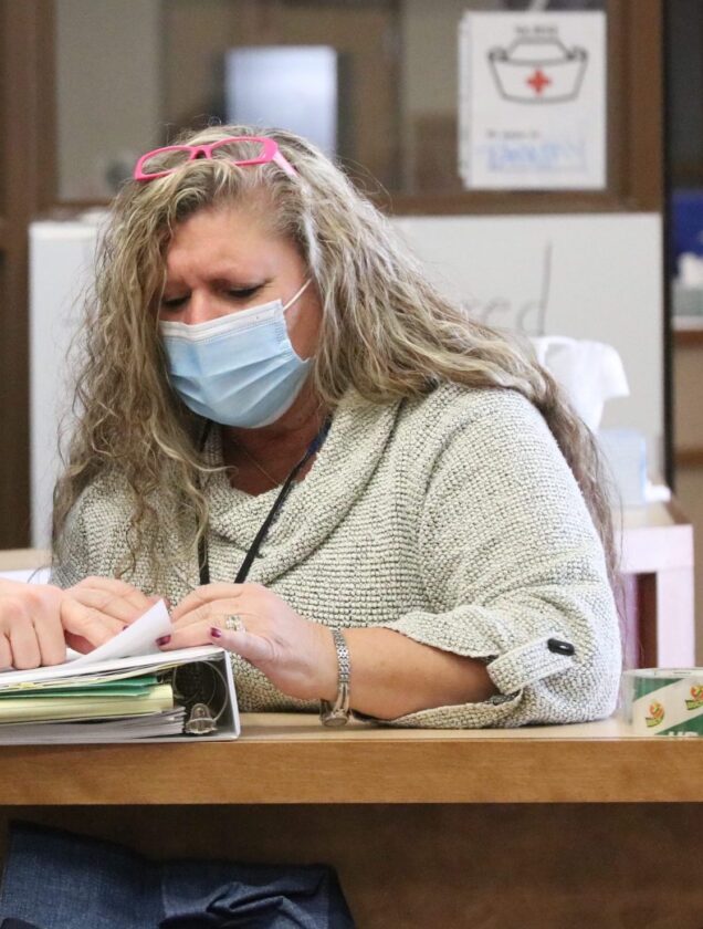 T-R FILE PHOTO — Former Tama County Human Resources Director/Insurance Administrator Tammy Wise participates in a vaccination clinic on Feb. 9, 2021. A report from the State Auditor’s office issued on Tuesday morning identified over $250,000 in questioned, improper and unsupported disbursements processed by Wise, who was terminated in February of 2025 and has a wrongful termination and tortious interference lawsuit pending against the Board of Supervisors and HR Specialist Paul Greufe.