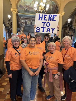 DES MOINES – Iowa Migrant Movement for Justice (IMMJ) held their yearly event at the Iowa State Capitol rotunda Wednesday, Feb. 18. Each day during the legislative session the Capitol rotunda is reserved for a rotation of statewide organizations who showcase their work through displays, speakers, and rallies. Organizations raise awareness and invite interaction with Iowans and elected officials at these events. IMMJ organized a “Rally for Immigrant’s Rights.”