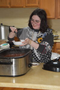 - Chloe Cornwell serves some chili to a customer during yesterday’s soup fundraiser at the Green Mountain Community Building. People could also choose chicken noodle or vegetable beef.