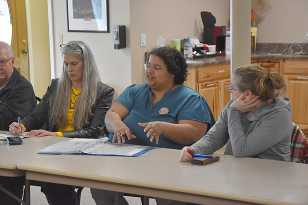T-R PHOTO BY LANA BRADSTREAM House of Compassion Director Jasmine Spikes seeks possible barriers people might face when it comes to the meals served at the nonprofit. She requests ideas from Marshall County Food Access Committee members during the Tuesday meeting.