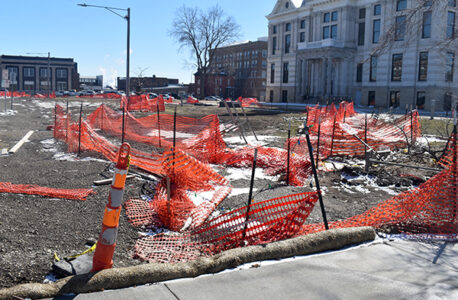 Con-Struct of Marshalltown and Ames is serving as the general contractor on the project. Before the snow last November, the sidewalks on the north side near the courthouse were poured, but the planter curbs still need to be finished along with the bricks to be inlaid on that sidewalk. When work starts again — which, according to a downtown sign, will begin Monday — the road from the east side of Center Street to the east side of 1st Avenue will be closed for two to three weeks, then the contractor will open the block coming in from Center Street while the 1st Avenue intersection is still closed. The south parking spots will remain closed to finish up the event plaza space on the courthouse lawn with plans to keep moving east toward 3rd Avenue.