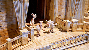 - PHOTOS BY SARA JORDAN-HEINTZ — Patrick Acton with his 80th matchstick creation, Disney’s Cinderella Castle, on display at the Matchstick Marvels Museum in Gladbrook.