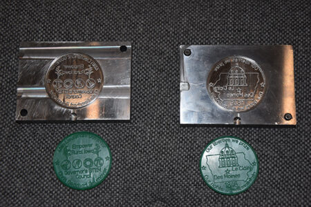 Student Kenna Paxon has a corner in the gallery for her pieces, and none of those are for sale. However, one piece will go down in Iowa history. Lt. Gov. Chris Cournoyer went through MCC on an Elevate Iowa tour and asked students if they could make a Challenge Coin for her. Paxon’s design was chosen, and she created the mold. She said Cournoyer will have 500 of the coins made from recycled plastic to give to people.