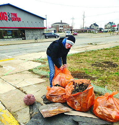 T-R FILE PHOTO A Marshalltown resident cleans up State Street in a previous Team Up to Clean Up event downtown. The event will take place again on Saturday, courtesy of the Marshalltown Central Business District.