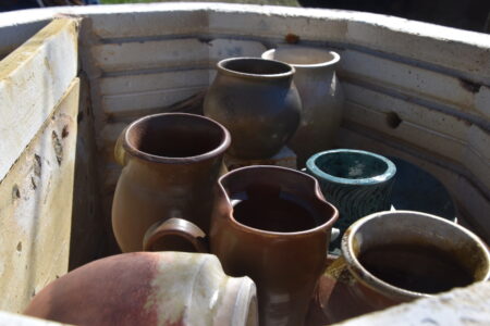 “Normally wood firing requires a large kiln which is always there,” she said. “It takes a whole bunch of people to fill it and fire it. You fire it for a couple days. This one, the fire is in a couple hours. So, you can do a small batch here. It’s very unique.”