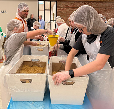 On Wednesday, more than 100 volunteers gathered at the Marshalltown Arts & Civic Center (MACC) to package 34,000 meals for residents who are experiencing food insecurity.