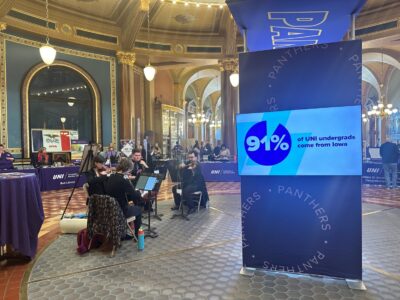 Photo by Brooklyn Draisey/Iowa Capital Dispatch University of Northern Iowa student musicians participate in UNI Day at the Iowa Capitol in 2024.