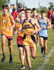 East Marshall finished in fifth without Joe Terrones, scoring 95 points. Hunter Hughlette led the team with a 14th-place finish and ran a 19:11.4, Kaleb Grant finished in 16th, Brock Curtis ran 19th and Patrick Slifer came in 20th place.