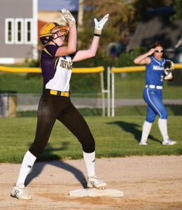 One of East Marshall’s track and field standouts, Hull hopped to her feet and returned the ball to the infield in time to keep Harreld from circling the bases. Kvale scored without a play to cut the Wolverines’ deficit to one, 2-1, but Neuroth nailed the door shut from there. She struck out Ella Costello looking and Payton Nolan swinging, as catcher Kennedy Wheater snagged the foul tip for the final out.