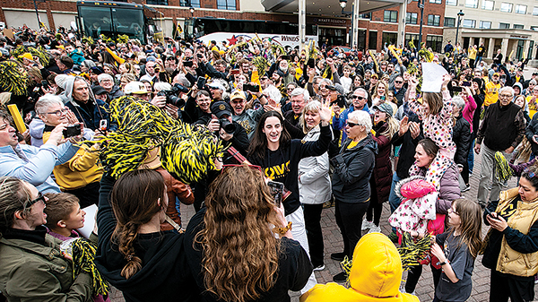 Coach Lisa Bluder, national player of the year Caitlin Clark and her teammates Monika Czinano and McKenna Warnock are scheduled to speak.
