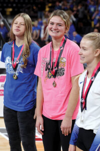 Grundy Center seniors Carlie Willis and Ellery Luhring and BCLUW freshman Olivia Peters were awarded medals as members of the seven-player all-tournament teams for their respective classes following Thursday’s finals at Xtream Arena in Coralville.