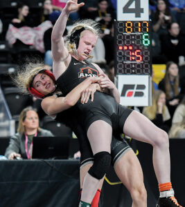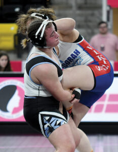 Earlier in the day, Elsbury pinned Waverly-Shell Rock’s Karissa Oldenburger in the semifinals. She said she was energized after watching Maeley, her older sister, get upended in a 135-pound semifinal that denied Maeley a chance at back-to-back state titles.