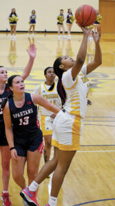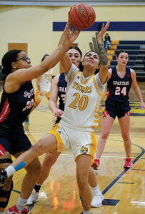 Marshalltown trailed by one, 52-51, when Southwestern’s leading scorer Brooklyn Hadl went to the bench with 2:59 remaining, leaving only three Spartans in the game for the home stretch.