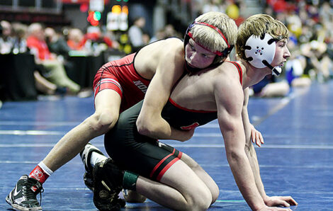 Kolt Knaack took his first loss of the season against defending state champion Corbin Reisz of Logan-Magnolia in the 150-pound semifinals, while Maxon Monat’s season came to an end against Nic Brase of Nashua-Plainfield in the 113-pound “blood round,” stopping Monat short of a medal.