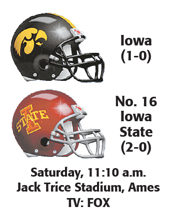 Iowa (1-0) at No. 16 Iowa State (1-0), 12:10 p.m. EDT (Fox)