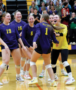 The Mustangs made it three wins in as many meetings with West Marshall this season, toppling the Trojans in three sets — 25-18, 25-20, 25-13 — to move through the first round of Class 2A Region 5 on Monday night.