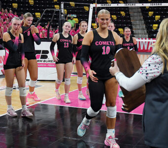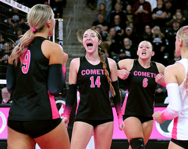 Junior outside Olivia Peters put down 15 kills for the Comets, Kylie Pekarek added nine kills and both Kennedy Davis and Cambria Wayman finished with five kills. Leah McEwen chipped in with two kills as the Comets battled back from what seemed destined to be a three-set sweep.