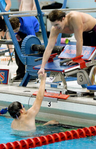 Dulaney used Sumner’s ability as an opportunity to challenge his own swimmers, with Jacob Seberger finishing second and Joe Greazel third behind Sumner in the 50 free.