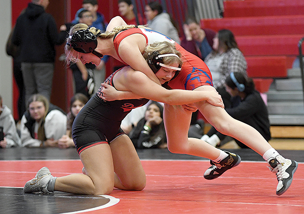 Natalie Nickey pinned Lydia Cowell on Tuesday, but instead scored a 16-0 technical fall for the Bobcats in Thursday’s rematch.