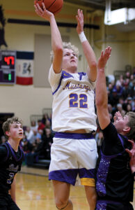 Jackson Bidwell endured foul trouble to lead East Marshall with 18 points in the win, while Jaxson Boswell scored 13 points off the bench. Jackson Busch added 10 points as a consistent scoring option in the paint, and Blake Neuroth made three 3-pointers for nine points.
