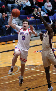 There was only one tie in the game and Marshalltown never trailed, but the Bobcats couldn’t pull away in the first half. A jumpshot by Hayes made it 27-23 with 20 seconds left, and Marshalltown came out of a timeout in a 1-3-1 zone defense for the first time after having played man-to-man to that point.