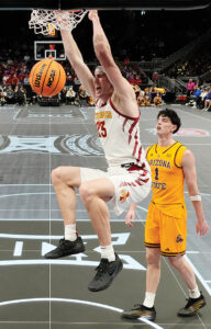 AP PHOTO - Iowa State forward Blake Buchanan (23) dunks the ball in front of Arizona State’s Santiago Trouet during the second half of their basketball game in the second round of the Big 12 Conference Tournament on Wednesday at the T-Mobile Center in Kansas City, Mo.