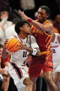 KANSAS CITY, Mo. — Seventh-ranked Iowa State leaned on defense, rebounding and balanced scoring to pull away from No. 16 Texas Tech for a 75-53 victory in the quarterfinals of the Big 12 Conference men’s basketball tournament Thursday afternoon at T-Mobile Center.