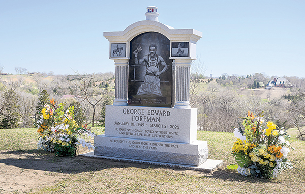 Foreman died March 21, 2025, at the age of 76 in Houston and was buried in Logan Park Cemetery at Sioux City, a month later, city officials confirmed. Foreman’s family returned Thursday to his burial site, holding a news conference with Sioux City Mayor Bob Scott to reveal Foreman’s burial place, marked by a large monument that bears an image of him as a teen following his Olympic gold medal boxing win.