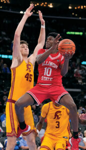- AP FILE PHOTO – Illinois State guard Ty’Reek Coleman, right, shoots as USC’s Gabe Dynes defends during the second half of college basketball game Nov. 14, 2025, in Inglewood, Calif.