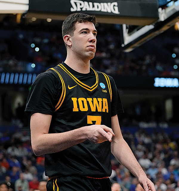 The 6-foot-10 junior forward averaged 8.4 points, 3.6 rebounds and 2.2 assists in 20.7 minutes per game during the 2025-26 season. He appeared in a reserve role for Iowa but became a key contributor during the team’s NCAA Tournament run.