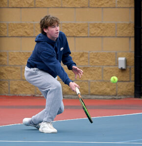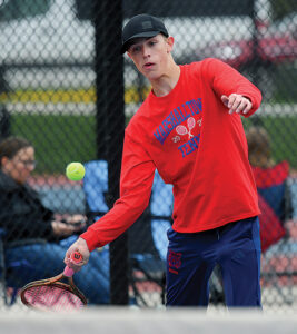 The Bobcats’ Rasmussen brothers — Caleb and Zachary — teamed up for the second time this season and stormed to a 6-2, 6-0 triumph over Michael Nhan and Jaxson Barry at No. 1 doubles, while seniors Kyle Smith and Jacob Hayes paired up for a 6-1, 6-2 win over Adam Miller and Daniel Klier at No. 2.