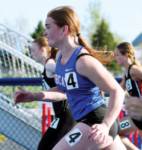 Marshalltown freshman Grace Whitmore won the 3,000-meter run and sophomore Grace Christensen scored victory in the 100-meter dash to highlight the Bobcat girls’ track and field team’s lone home meet of the season Monday at Leonard Cole Field.