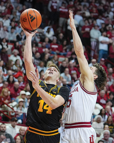 BLOOMINGTON, Ind. — Bennett Stirtz scored 27 points, Tavion Banks added a career-high 26, and Iowa defeated Indiana 74-57 on Saturday, snapping a three-game losing streak.