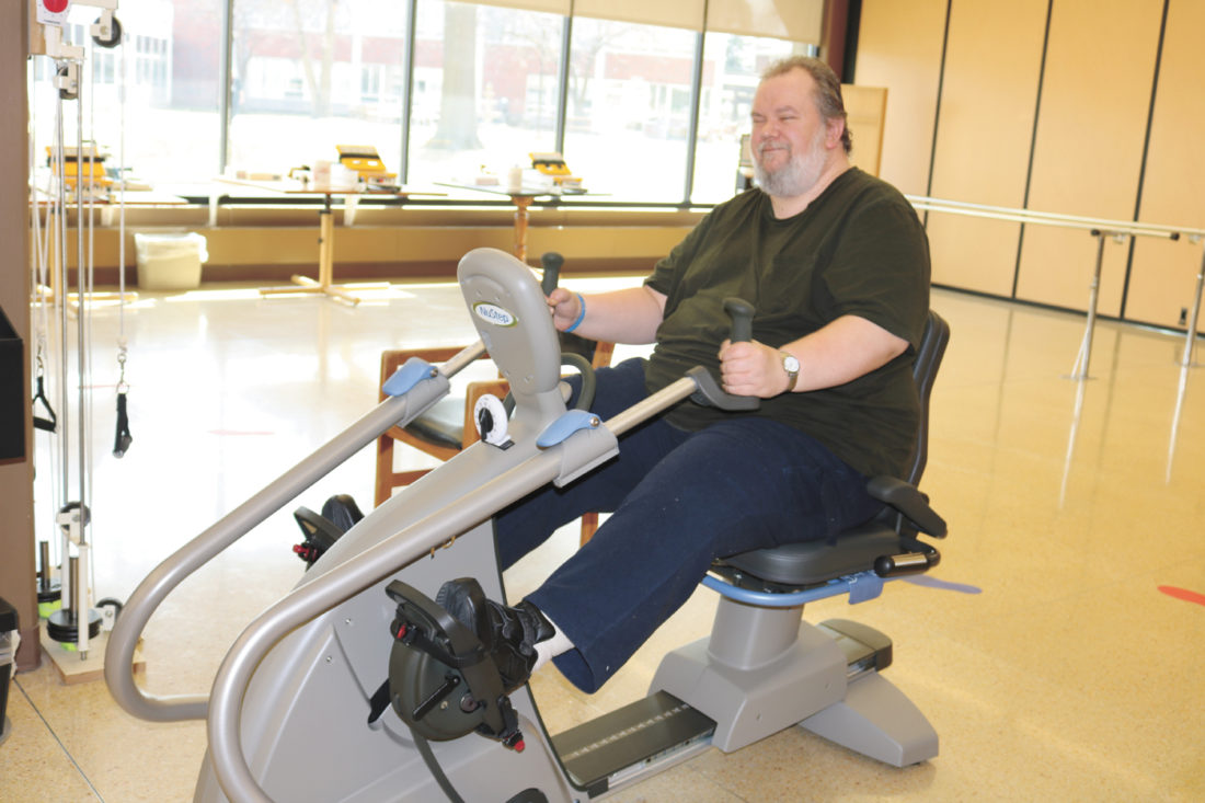 T-R PHOTO BY ADAM SODDERS IVH resident Bucky Bean enjoys using the donated cross trainer, and said it’s convenient and good for building muscle while in physical therapy.