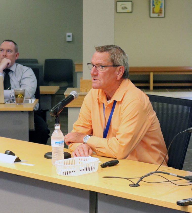 T-R PHOTO BY ADAM SODDERS On the recommendation of district Buildings and Grounds Director Chuck Springer, pictured, and FEH Design, the Marshalltown School Board voted unanimously to award Central States Roofing a project to repair the Marshalltown High School/Community Auditorium roof. A completion date is set for Sept. 15.